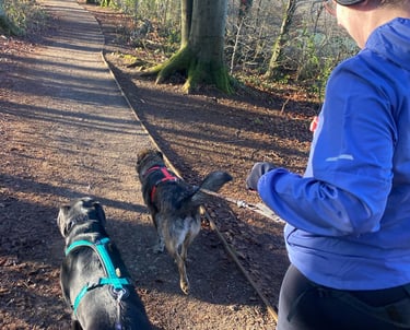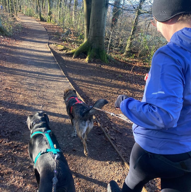 "I recently had my first Cani-cross run with Louisa, and it was an incredible experience! I’m now eager to get a harness because running hands-free with my dog was such a joy, and it saved my back compared to the waist leads I’ve tried before. These harnesses really support you by going around your legs. Louisa is an outstanding coach—knowledgeable, patient, and such a fun person to be around. I highly recommend booking a session with her; she truly knows her stuff and was fantastic with my dog, Bennie. I can’t wait for more sessions in the future! Plus, her lovely dog Max came along to keep Bennie company, and he enjoyed having a buddy to run with. Thank you, Lou, for an amazing time!"